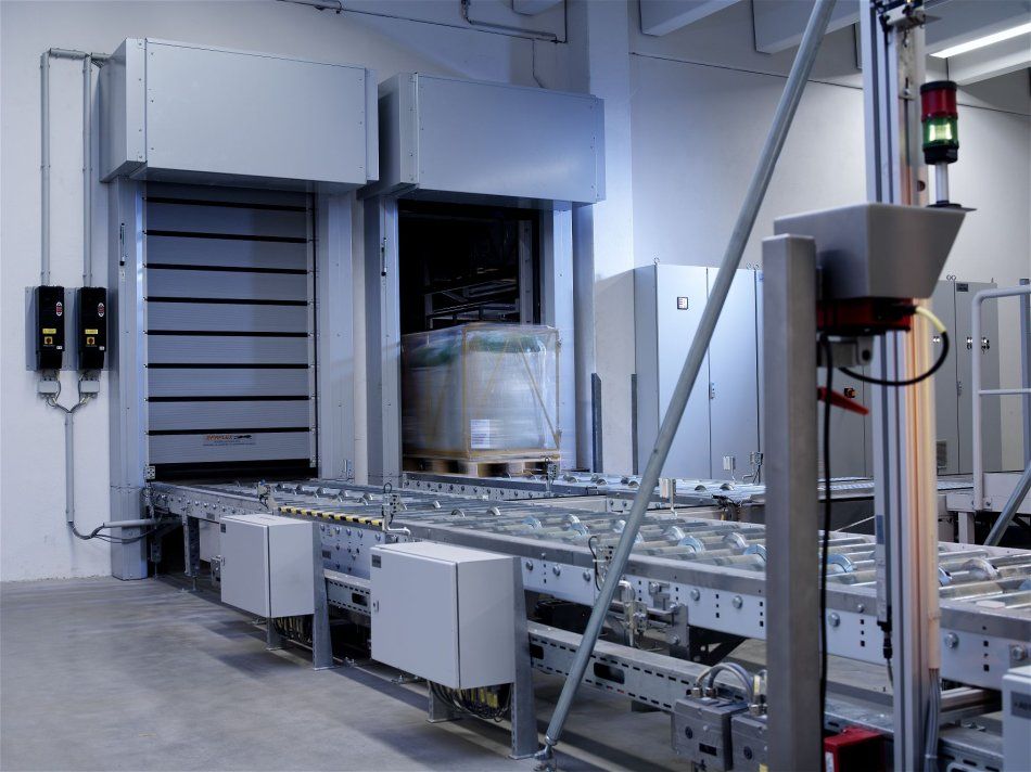 万达门业硬质二七快速门的前后增设了“主动式红外传感器“(AIS),用于监控门的前后危险区域。在高速门处于打开状态以及关闭的过程中,此装置触发启动,如果在其扫描范围内探测到障碍物,无论它是运动的还是静止的,高速门会立刻反向运动。如果将红外线传感器安装 在某一 通道门框的上面,可以确保获得较大的监控区域。例如,一辆叉车很快驶进一个正关 闭着的门,红外线传感器被触发后,门很快就会又打开, 从而避免了叉车与高速门的碰撞。万达可以提供一套完整的二七二七工业门解决方案。从用于安装的支撑架到必要的防雨设施, 各种问题在这都可以得到解决。